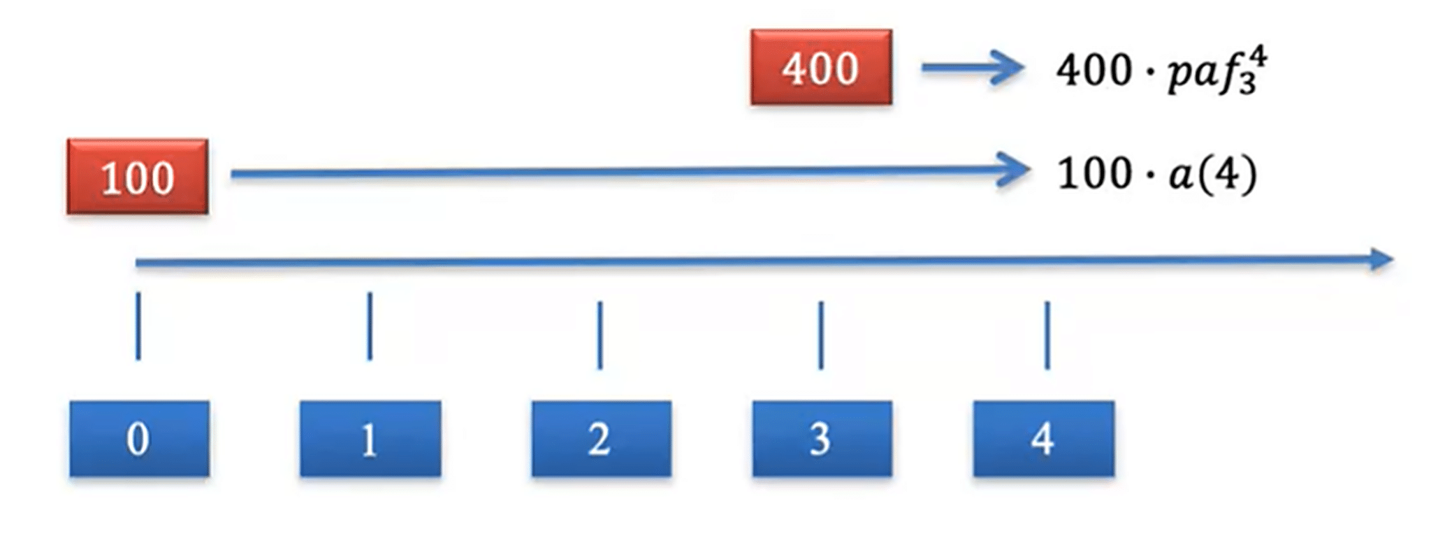 Note that we are using the term “periodic” discount factor because we are using a general time unit. So, if our time units were in years, then v will be termed as an “annual” discount factor. That is: